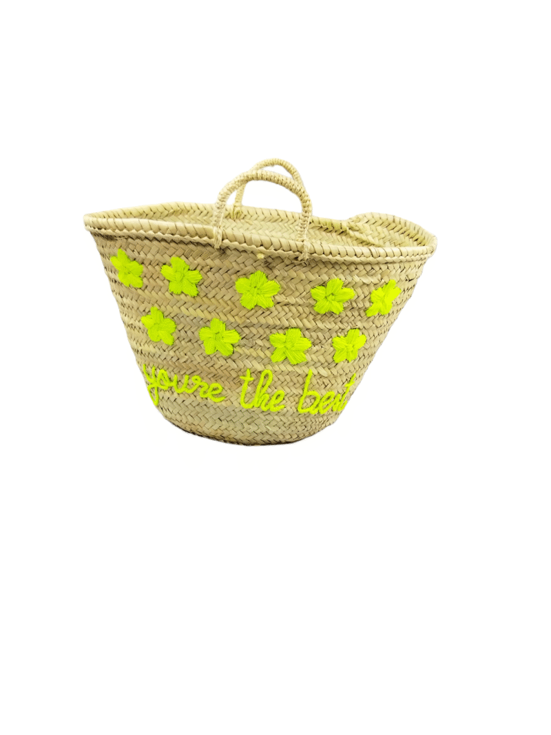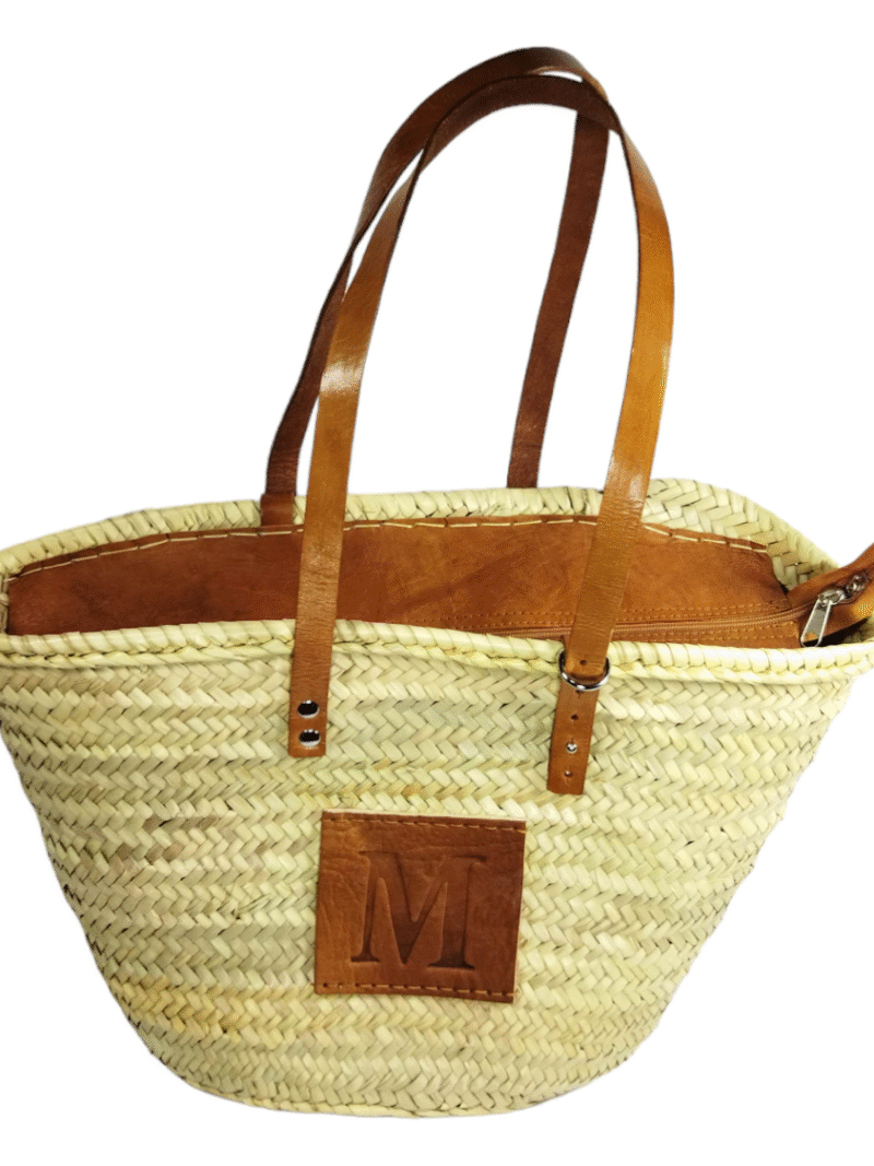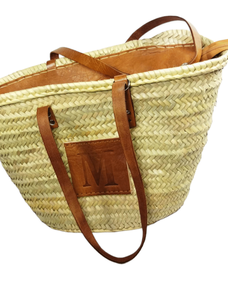 Straw Basket – Leather Letters