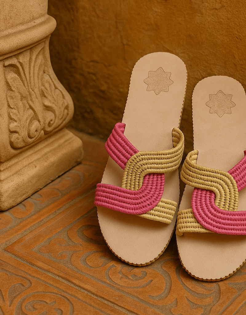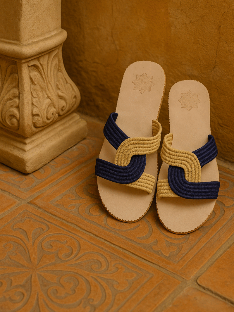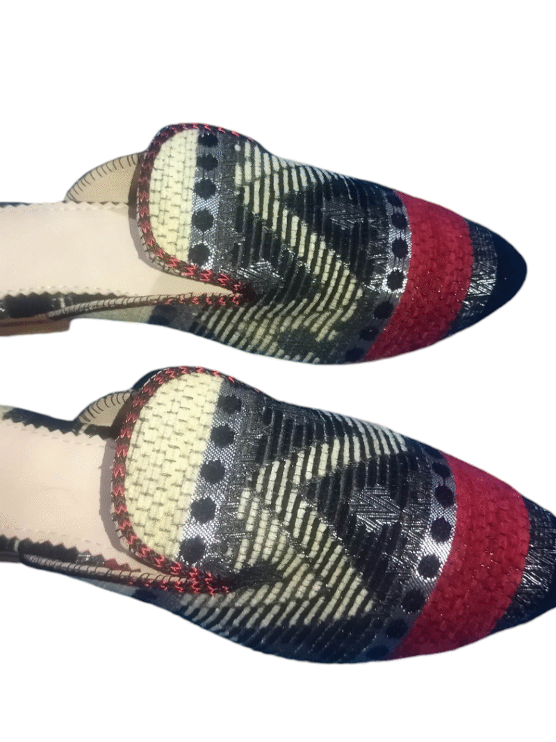 € 70,00Original price was: € 70,00.€ 64,00Current price is: € 64,00.Elegant women's slippers handcrafted from cotton and genuine leather, available in sizes 36 to 41. Featuring colorful geometric patterns inspired by traditional Moroccan motifs in… -