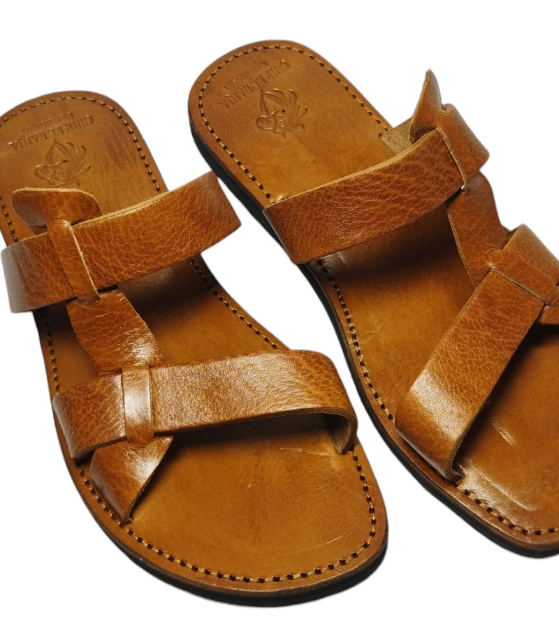 Genuine leather slipper with traditional design