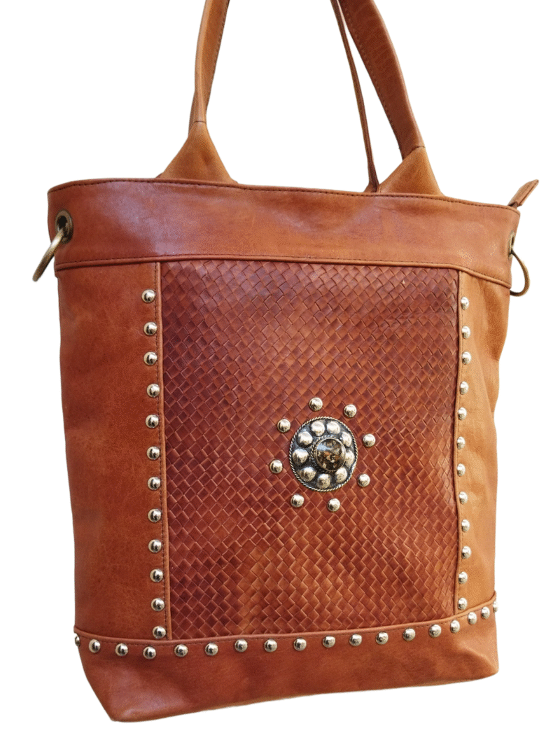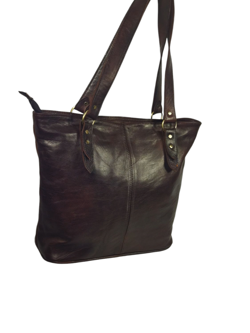 Brown leather handbag with a modern design