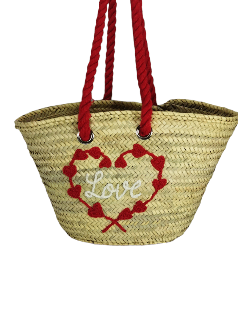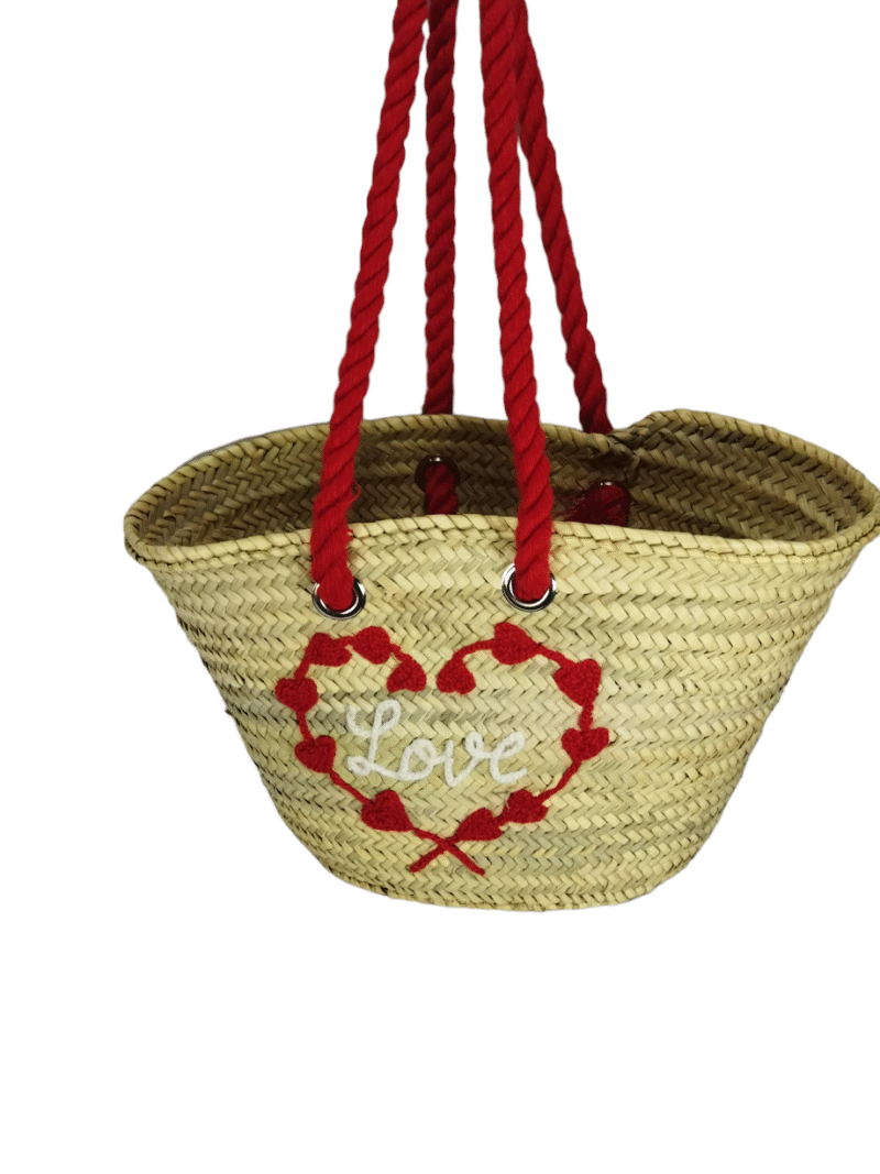 Straw basket decorated with a heart I love you