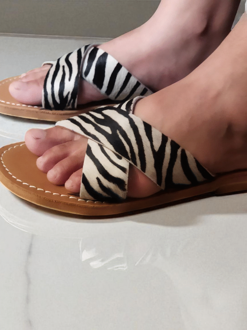 Genuine Leather Sandal with Dyed Leopard Print